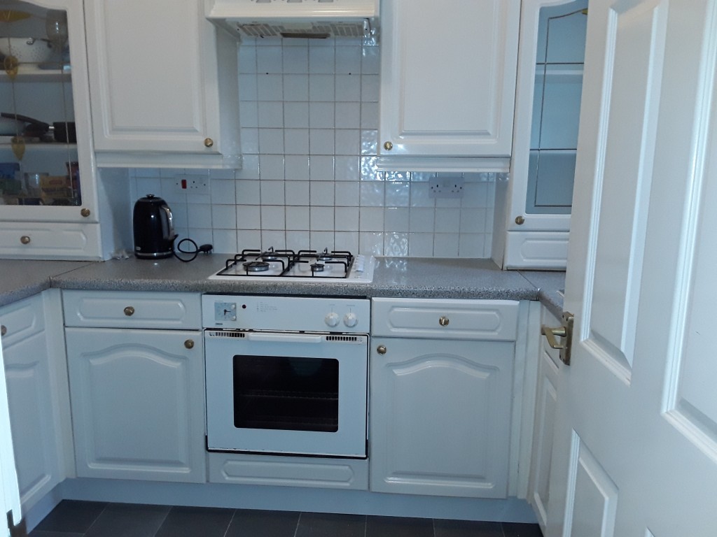 Kitchen:Built in base units with cupboards and drawers below and worktops and wall units above. It will have brand new built-in electric oven, gas hob and cooker hood over, washer/dryer and fridge, sash window to front, vinyl floor covering